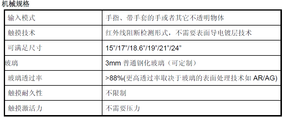 | 尺寸 | 產品型號 | 觸摸屏厚度 | 觸摸區域 | 外部尺寸 | |||