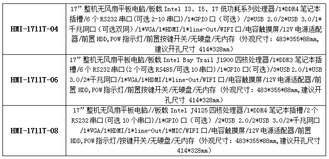 HMI-1711T是一款配置17” LCD 液晶屏的低功耗工業(yè)級平板電腦,采用Intel® Atom J1900/J4125 四核低功耗處理器,具有豐富的I/O 接口,可廣泛應用于如電氣測試校驗臺、煙草物流檢測設備、橡膠機械、測試設備等領域。